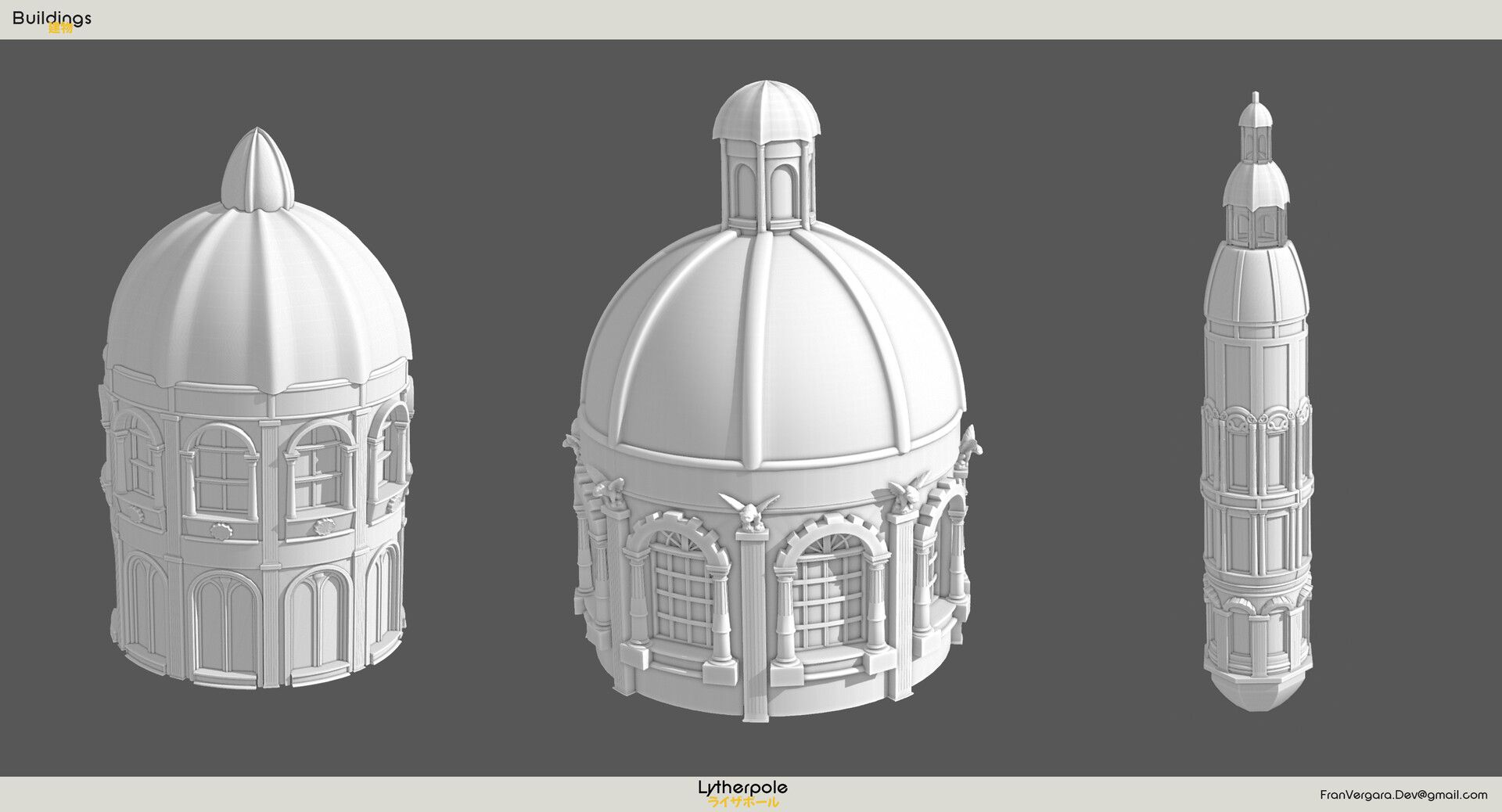The buildings are not very complex, I focused on the shapes to make them right and appealing. One of the main techniques for the domes and any circular building were the use of arrays and curvates so I just needed to do one straight panel.