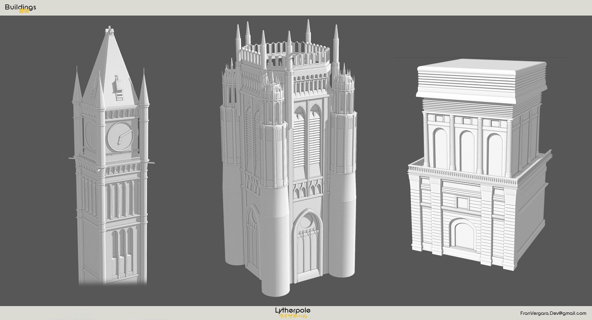 Lytherpole is the old name of Liverpool. If you know the city you'll notice the tower of the cathedral on the left and the Victoria Clock Tower on the right. It's a mix of some elements of the city and my own view of this project. In the end, we didn't do the cinematic, but I had a preview of the concept in case you are interested to see it: